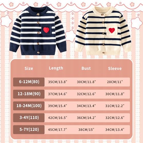 Winmany Toddler Cardigan Sweater Kids Striped Knit Button Down Sweater with Heart Pocket, Soft Cotton Cardigan for Girls Boys 7