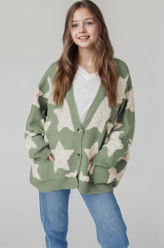 SELINK Girls Cardigan Sweater Sherpa Star Pattern Sweater Cardigan Casual Open Front Chunky Coat with Pockets 1
