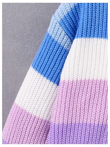 Verdusa Girl's Colorblock Button Front Cardigan Sweaters Y2K Knit Outerwear 4