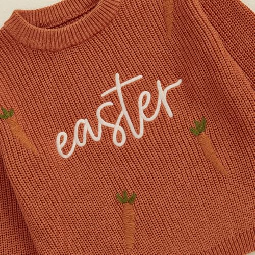Owl's-Yard Kids Easter Sweater Long Sleeve Crew Neck Carrot Letters Warm Winter Sweater Easter Clothes for Girls Boys 6