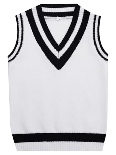 Aislor Boys Girls Jumper Kids Striped Trim Knit Vest School Uniform Sleeveless Sweater Pullover Waistcoat Knitwear 7