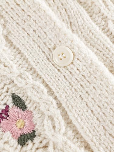 More information about marc & janie Girls Crew Neck Hollow Knit Cardigan Cherry Jacquard Loose Drop Shoulder Sweater Button Down Tops 241071