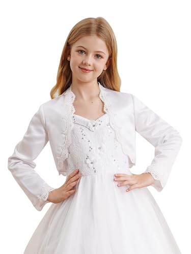 Hularka Kids Girls Sparkly Sequins Bolero Shrug Long Sleeve Open Front Cropped Cardigan Flower Girl Dress Cover Up 6
