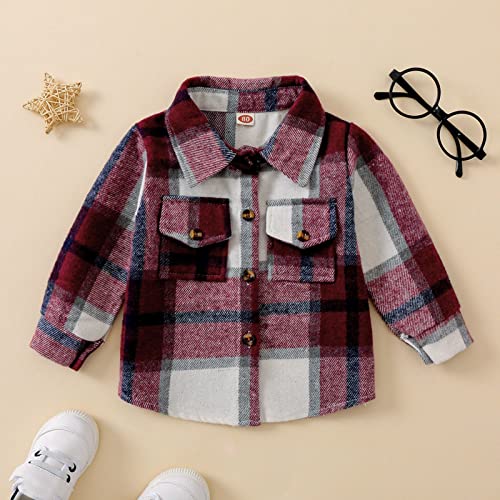 Toddler Boys Girls Shirt Coat Jacket Plaid Long Sleeve Kids Turn Down Collar Button Baby Outerwear Autumn Jackets 4