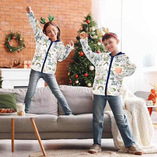 CHIFIGNO Green Dinosaurs Toddler Coats Fleece Lined Zip up Jacket Boys Fall Jacket with Hooded 5T 5