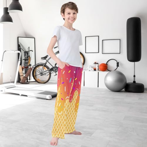 HOT ! Boy's Pants Deep Color Ice Cream Jogger Pants Elastic Waist Long Bottoms Trousers with Pockets 6-14 Years