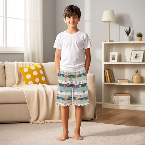 ALAZA Colored Star Striped Pajama Shorts Elastic Waist Casual Sleep Shorts with Pockets Size 6-14 3