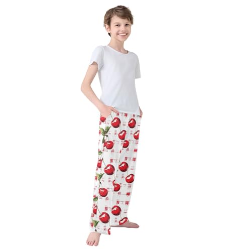 Pajama Bottoms, Cherries Plaid Pajamas Pant Sleep Long Pants Lounge Wear Elastic Waist Sleepwear Pjs 3