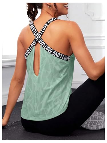 OYOANGLE Women's Letter Tape Criss Cross Cut Out Workout Tank Tops Gym Sleeveless Shirts Activewear 5