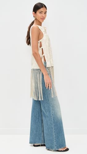 • Tonal floral embroidery, Fringe trim at hem, D-ring closures at sides