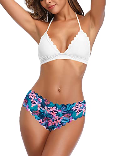 SHEKINI Women's Scalloped Bathing Suit Triangle Bikini Halter Sexy Floral Two Piece Swimsuits 6