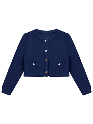 Sholeno Kids Girls Long Sleeve Sweater Button Down Knit Cardigan Solid Color Crochet Cropped Top Dress Coat 6