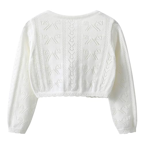 Girls 𝐁olero 𝐒hrug Sweater Cardigan Cute Bow Open Front Long Sleeve Dress Cover Up Ruffle Knit Closure Outwear 6