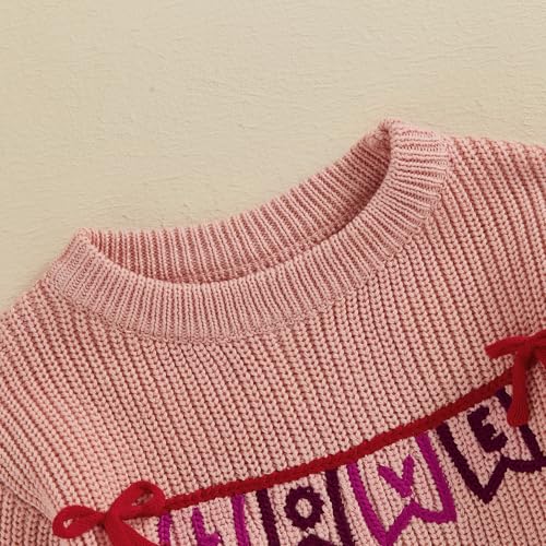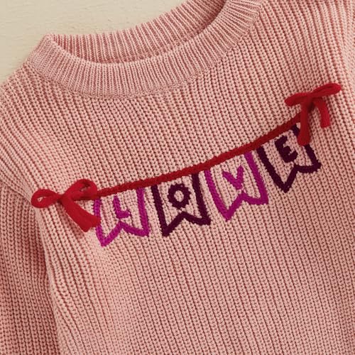 Girl Valentine’s Day Sweaters Long Sleeve Banner Garland Embroidery Knit Pullovers Jumper Tops 4