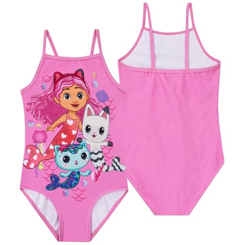 • Dive Into An Underwater World With Gabby: Dive into fun with this Gabbys Dollhouse swimsuit, showcasing Gabby as a charming mermaid with pink hair. Surrounded by her friends Pandy Paws and Mercat, bubble and shells, it's a girls swimsuit they will love and perfect for any little swimmer's sea adventures