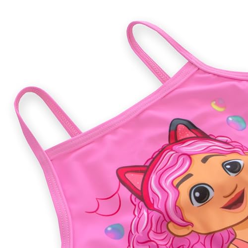 • Cute Kids Bathing Suit: Ideal for both summer holidays and everyday swimming, this girls Gabbys Dollhouse bathing suit features a pink base and a fun Gabby’s design. The spaghetti straps style makes this kids swim suit easy to wear, while the aquatic theme, makes your little one the star of the swimming pool