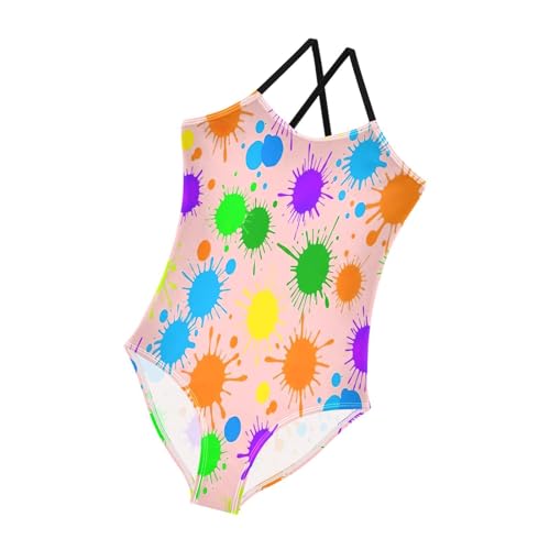 HOT ! Colorful Paint Splatters Blobs Girls 1 Piece Swimsuit with Adjustable Shoulder Strap, Beach Bathing Suit, 3-10