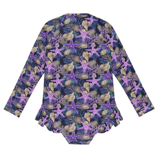 ALAZA Cute Coral Starfish Seashell Girls One Piece Swimsuit Long Sleeve Rash Guard Swimsuits UV 50+ Swimwear Zipper 1