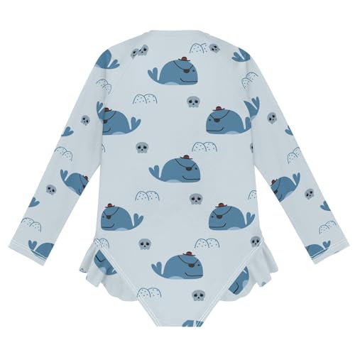 Whale Pirate Girls Swimsuit One Piece Rash Guard Girls' Swimwear Long Sleeve Swimsuits for Girl Size 3-12T 4