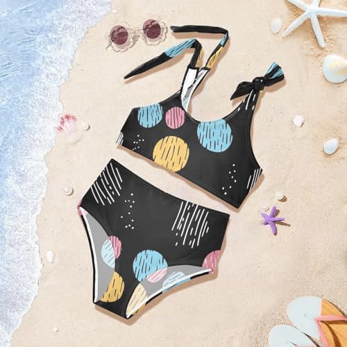 KLL Crayon Polka Dots Black Pattern Girls' 2 Pieces Bikini Sets Beach Bathing Suit Swimwear Adjustable Strap 5