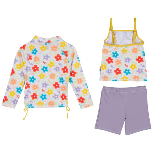 SwimZip Girls' 3 Pc Swim Set w/Long Sleeve Rash Guard, Tankini & Shorts UPF 50+ 2