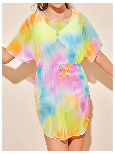 Milumia Girl's Tie Dye Sheer Bowknot Crew Neck Swimwear Cover Up Mesh Coverups 6
