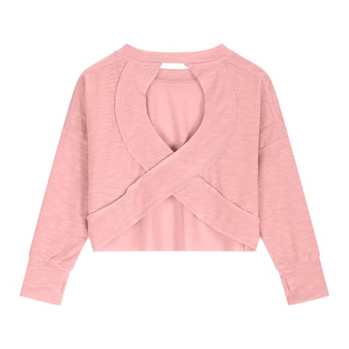 Girls Long Sleeve Shirts Fashion Back Cutout Sport Tops Trendy Crewneck Teen Girl Gym T-Shirts Comfy Cotton Blouse 7
