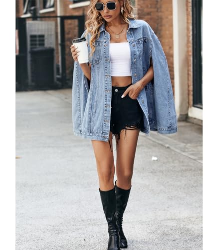 Angsuttc Denim Jacket for Women Poncho Cape Style Jean Jackets Loose Outerwear 3
