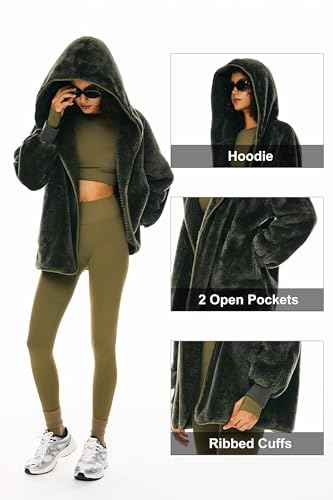 Orolay Women's Hooded Fuzzy Fleece Jacket Long Sleeve Winter Open Front Cardigan Oversized Coat with Pockets 1