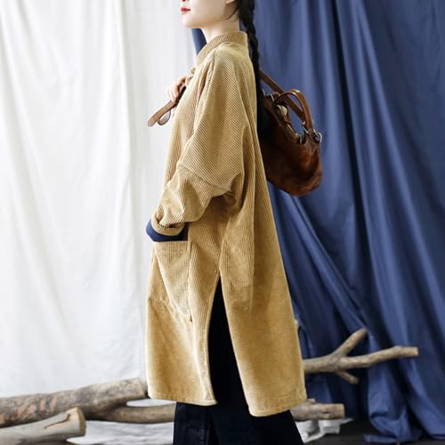 Ystylee Womens Classic Long Corduroy Jacket Sherpa Fleece Lined Loose Button Down Chinese Vintage Jacket Trench Coat 7