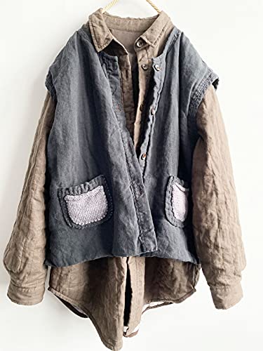 More information about NFYM Women's Linen Vest Thin Quilted Mid Length Button Down Sleeveless Jacket with Hand Woven Pockets