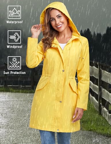 Bloggerlove Rain Jacket for Women Long Raincoat with Hood Lightweight Windbreaker Waterproof Outdoor Trench Coat 6
