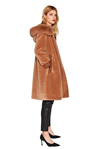 • ➤[Design]- Real fur overcoat, with fox fur hooded and lambskin leather trim on cuff sleeves and welt pockets,keeps you warm and provide fashion style in cold winter. Long sleeves, button closure, knee long and 2 large slanting pockets.
