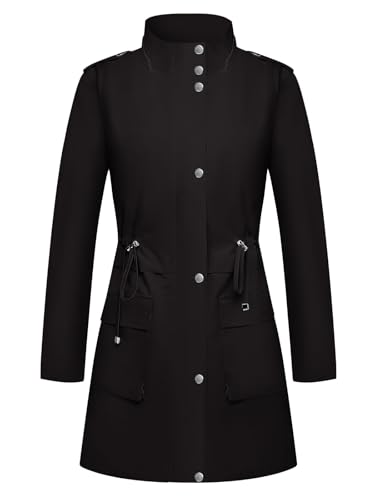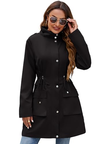 Womens Rain Jacket with Hood, Long Rain Coat for Women Waterproof Trench Coat Lined Windbreaker Fall Jacket 6