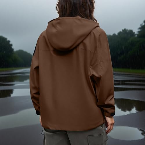 HOT ! Womens Waterproof Rain Jacket Lightweight Hooded Windproof Raincoat Oversized Outdoor Windbreaker with Zipper Pockets