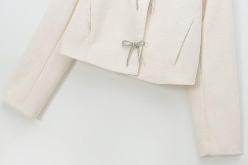 Winter Jacket Fashion Minimalist Women's Twiil Jacket With Sequins Bow Buttons Beige Jacket Women Tops 7