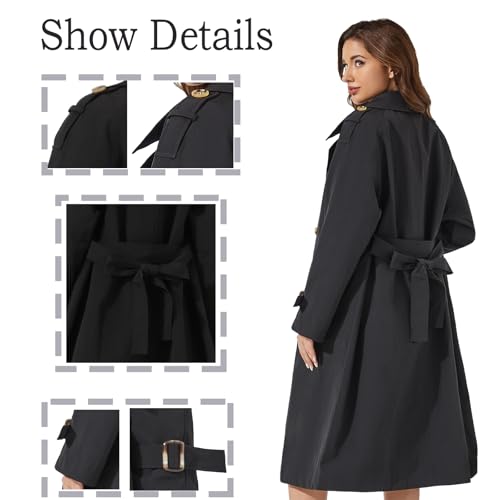 More information about Women's Double Breasted Long Trench Coat Windproof Classic Lapel | Side Pocket Thin Coat With Belt.