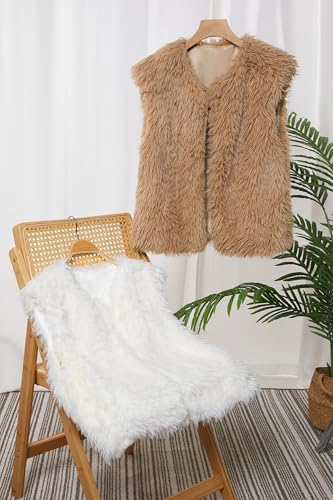 Tankaneo Womens Faux Fur Vest Cropped Sleeveless Warm Winter Shaggy Open Front Outerwear Vest 6