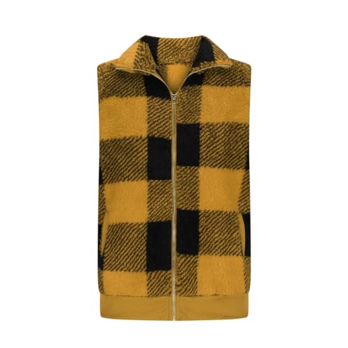 HOT ! Women's Plaid Fleece Vest Casual Sleeveless Zip Up Winter Warm Sherpa Jacket with Pockets Open Front Cardigan Coat