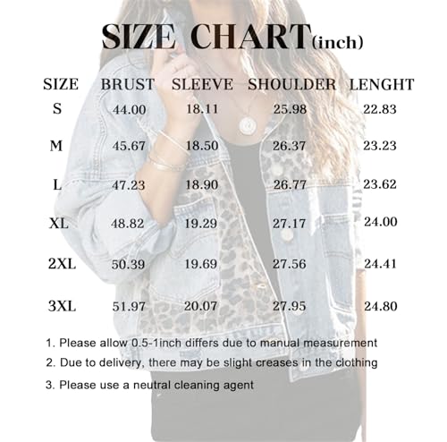 • Design: This fashion denim jacket coat features trendy leopard print accent , classic button-up design, two functional front pockets provide convenience for hold small items.