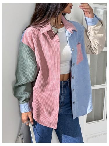 HOT ! Verdusa Women's Color Block Jacket Coat Streetwear Button Down Collared Outerwear with Pockets