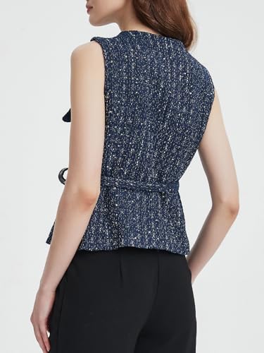 • Design: Tweed blazer vest features crewneck, fully lined, button down, front pocket, unique waist belt, elegant style combines classic design, offering stylish look