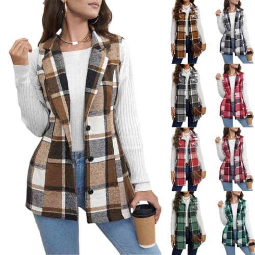 Womens Fall Flannel Plaid Vest Comfy Button Down Shirt Blazer Jacket Sleeveless Cardigan Coat Casual Outerwear Vests 6