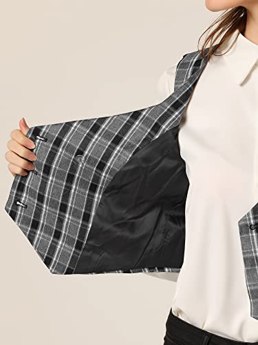 Allegra K Women's Suit Vest Plaid Steampunk Vintage 1950s Double Breasted Waistcoat 4