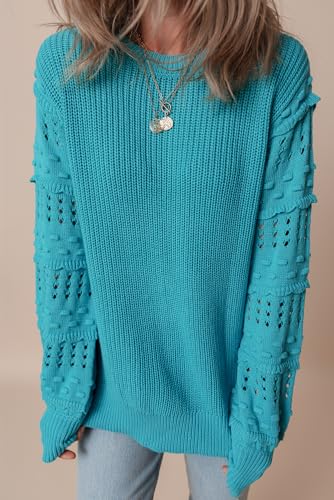 • 4. **Fashionable & Comfy**: Look and feel great in this cozy turquoise sweater with bubble sleeves and a round neck. Suitable for daily wear, this sweater is a great addition to any wardrobe and pairs well with a variety of bottoms.