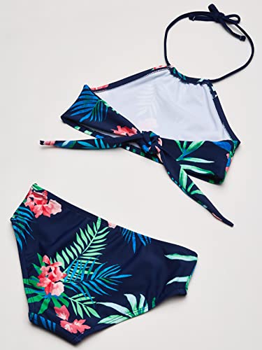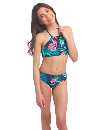 Kanu Surf Girls' Mahina UPF 50+ Beach Sport Halter Bikini 2-Piece Swimsuit, Leonie Floral Navy, 12 5