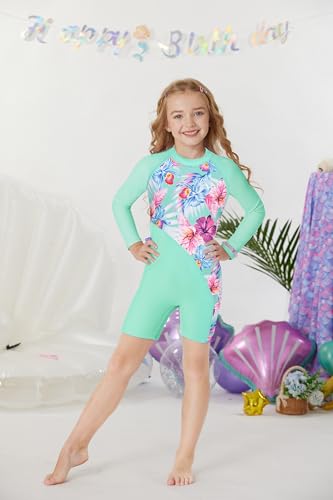 • Girls Rash Guard Swimwear: Long sleeve swimwear provides better coverage and protection. UPF 50+ sun protection blocking more than 97% of the sun's harmful UV radiation. It also prevents sand from entering and small stones from scratching. The zipper design on the back makes it easy to put on and take off, and makes the suit look more precise and beautiful.
