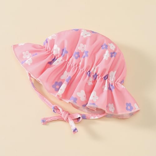 Toddler Girls Swimsuit with Hat Ruffle Stripe Swimwear Summer Beach Bathing Suit 6M-4T 1