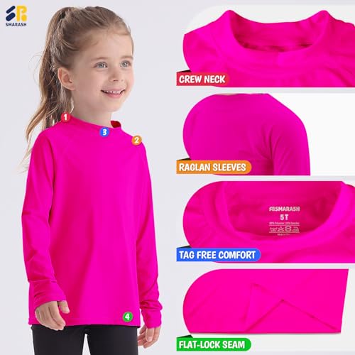 Girls Rash Guard Swim Shirt Long Sleeve for Toddler Kids Rashguard Water Shirt UPF50+ Swimming Fishing Sun SPF Shirt Neon Pink 2T 5