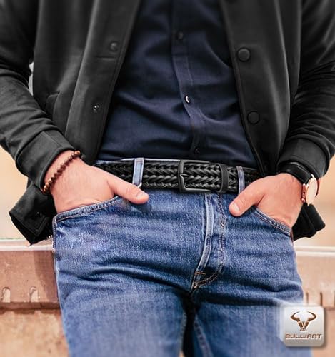 BULLIANT Men Belt 2Pack,Braided Woven Leather Belt For Men Golf Casual Jeans 1 3/8" 3